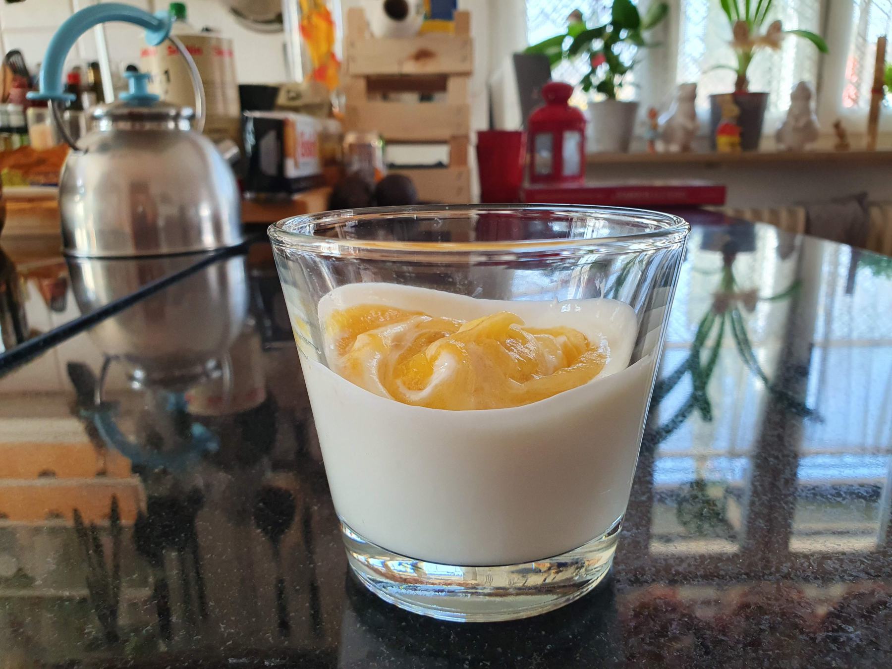 Kein Problem, schmeißen wir eben die Hexenküche an und probieren wir uns selbst… Damit es ein Solero-Gefühl wird sollte es fruchtig-frisch sein. Exotische Früchte brauchts. Und Vanille. Vor diesem Hintergrund bietet sich Marmelade an. Den „Milch-Geschmack“ aus dem Eis – dazu kommen wir, wenn die Marmelade fertig ist!